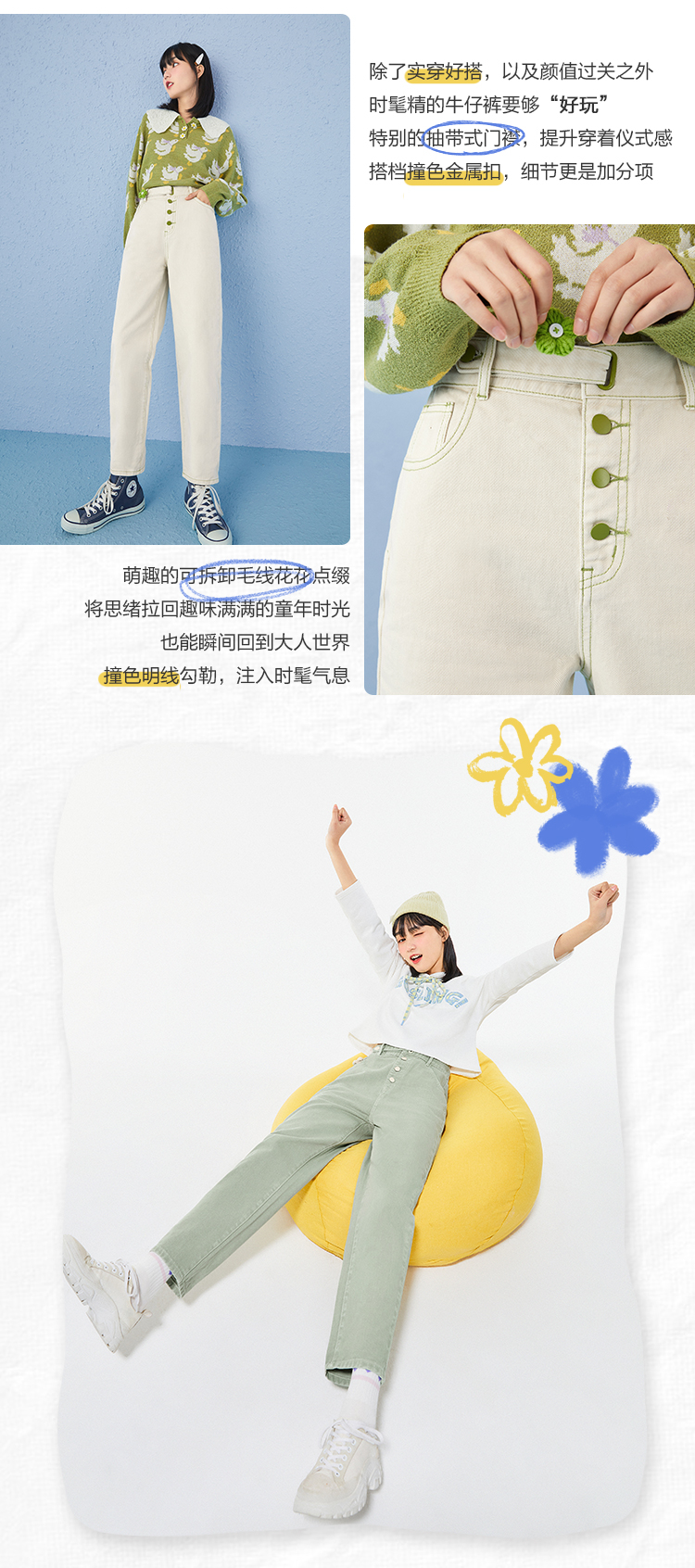 7分鐘前直筒牛仔褲女2021年春季新款褲子女裝童趣花花牛仔褲寬鬆 - 套餐三 買2送2-NT$2299